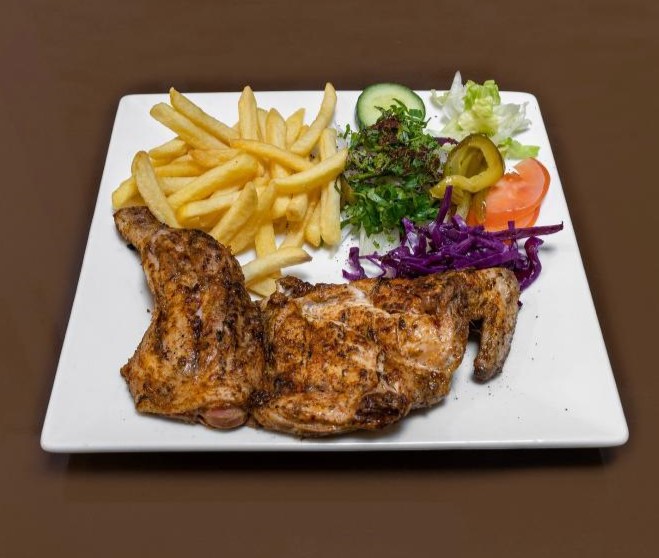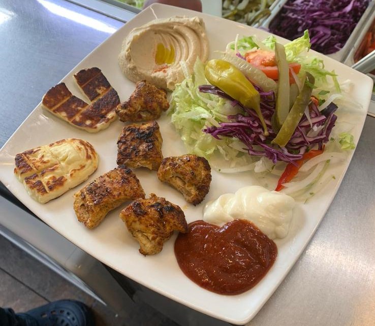 £ 8.00CHICKEN SHAWARMA SERVED WITH CHIPS OR RICE AND SALAD.